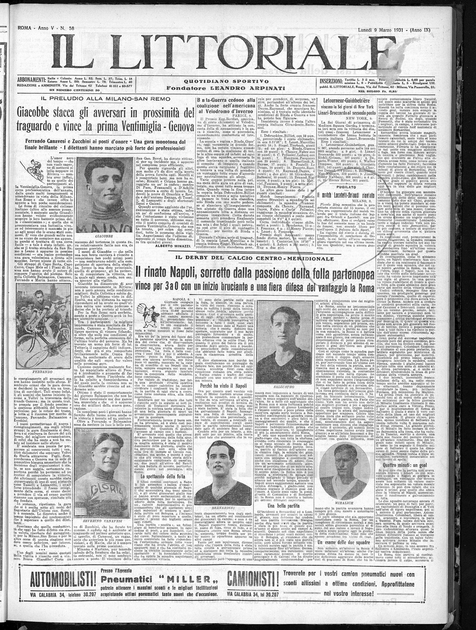 Numero: 058 del 09/03/1931 - 6 pagine